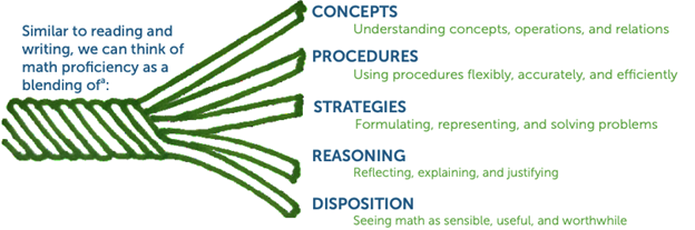 Effective math instruction centers around developing math proficiency in all learners. Math proficiency is a blending of the following:
